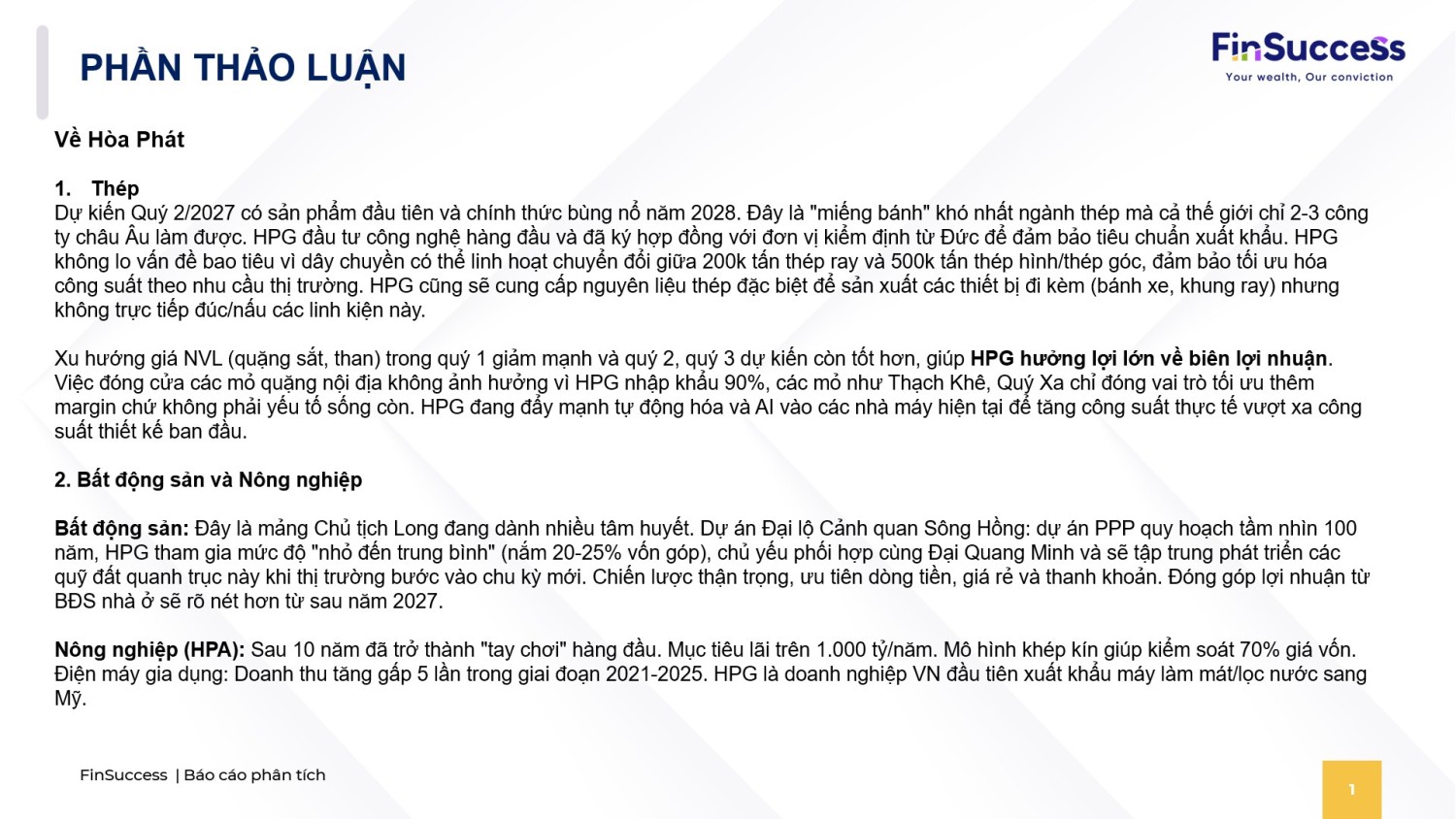 B. THẢO LUẬN VÀ QUAN ĐIỂM CỦA FINSUCCESS