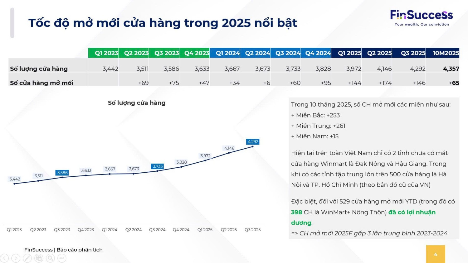 Trong 10M25 Wincommerce (trong bài sử dụng từ viết tắt là WCM) mở mới 529 cửa hàng, tập trung ở miền Trung (261 CH) và miền Bắc (253 CH), trong khi miền Nam mở 15 CH, đặc biệt hơn năm nay công ty tập trung mở toàn bộ là mô hình Minimart/Winmart+. BLĐ cho rằng đây là điểm sáng của WCM hiện tại, chiến lược nghiên cứu thị trường và hành vi tiêu dùng của khách hàng giúp cho họ có sự chọn lọc sản phẩm tốt, từ đó giúp WCM thành công mở rộng chuỗi cửa hàng của mình trên 61/63 tỉnh thành cả nước ngoài Đak Nông và Hậu Giang (theo bản đồ cũ của Việt Nam).