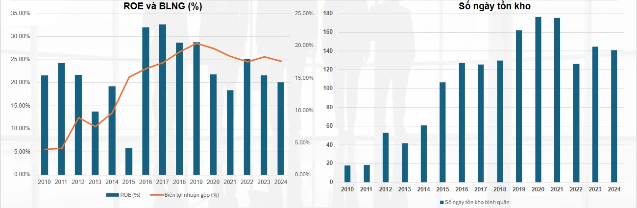 Lý do khiến ROE của PNJ suy giảm bởi 2022 là năm PNJ có tốc độ tăng trưởng rất tốt về mọi mặt, 2 năm gần đây sự suy giảm về vòng quay hàng tồn kho là lí do khiến PNJ bị giảm ROE nhưng 2024 đã cải thiện hơn 1 chút thì lại bị suy giảm về BLN. Kì vọng 2025 đổ đi BLN của PNJ sẽ cải thiện từ đó giúp ROE chính thức phục hồi từ lại mức trên 15%