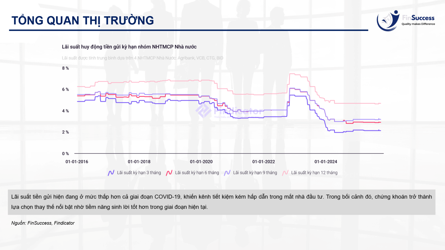 Lãi suất tiền gửi hiện đang ở mức thấp hơn cả giai đoạn COVID-19, khiến kênh tiết kiệm kém hấp dẫn trong mắt nhà đầu tư. Trong bối cảnh đó, chứng khoán trở thành lựa chọn thay thế nổi bật nhờ tiềm năng sinh lời tốt hơn trong giai đoạn hiện tại.