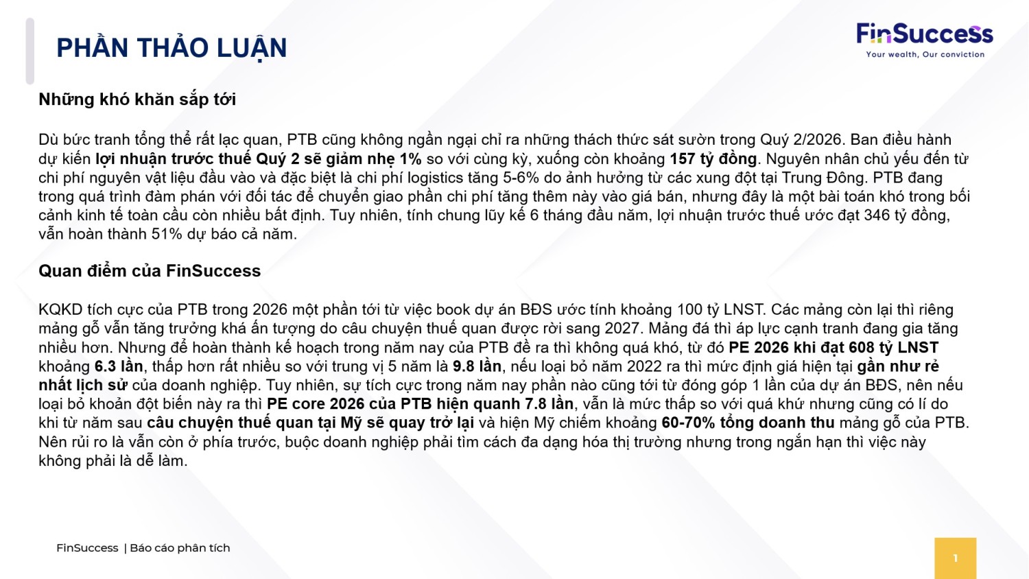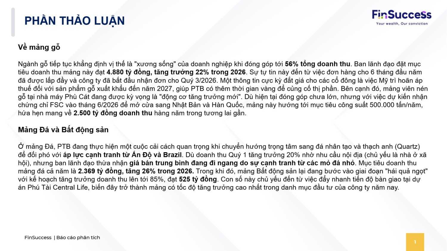 B. THẢO LUẬN VÀ QUAN ĐIỂM CỦA FINSUCCESS